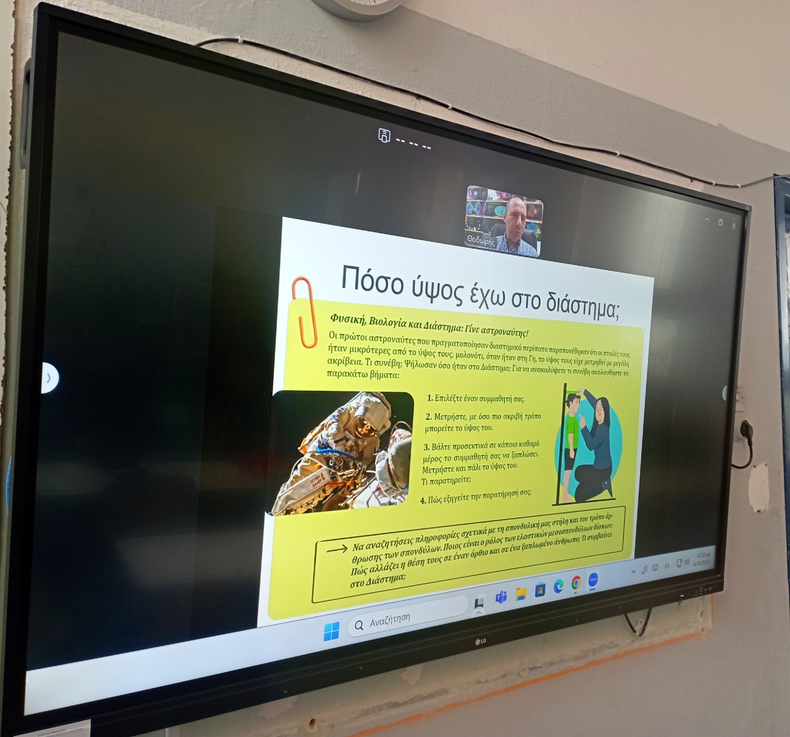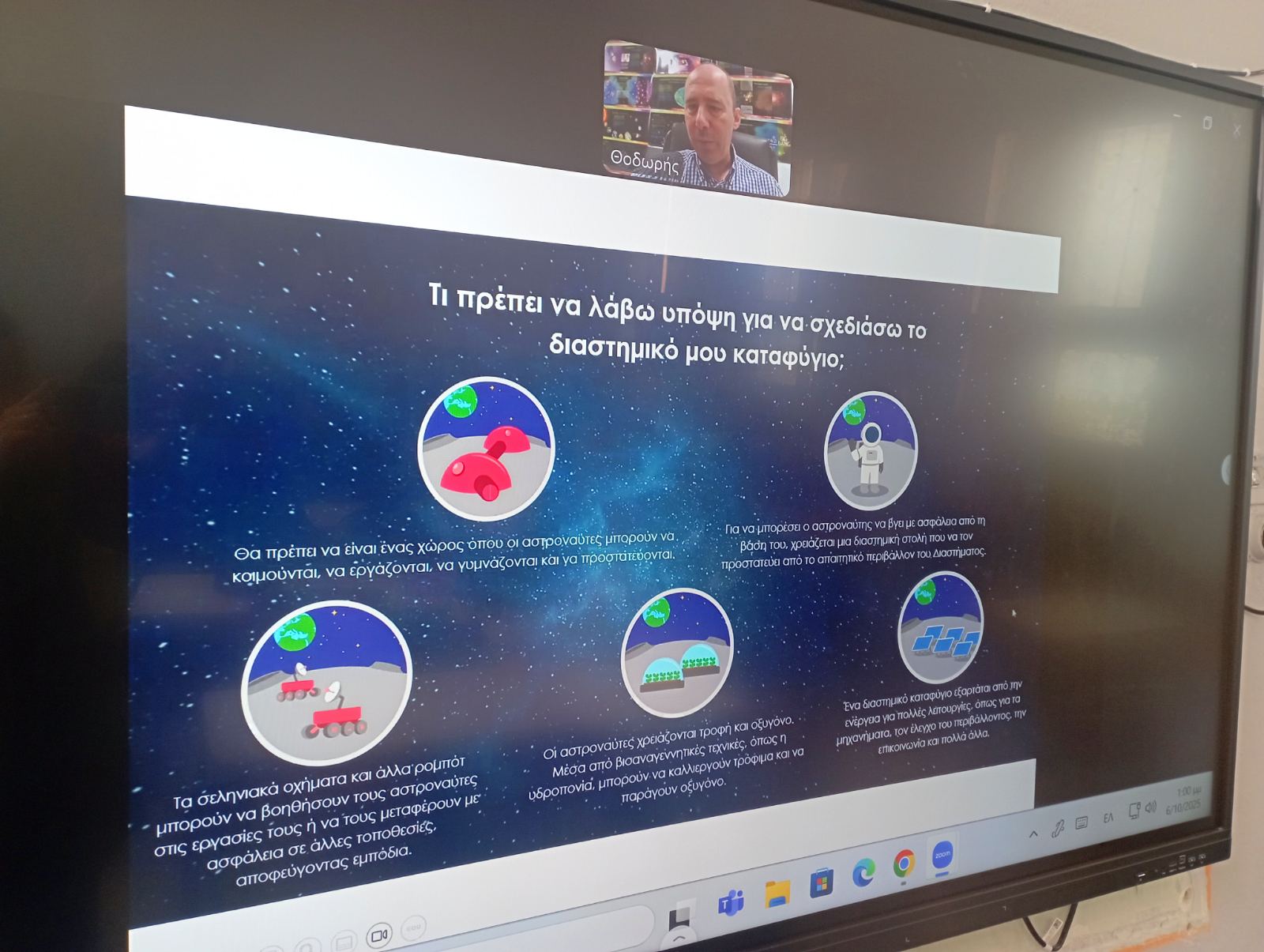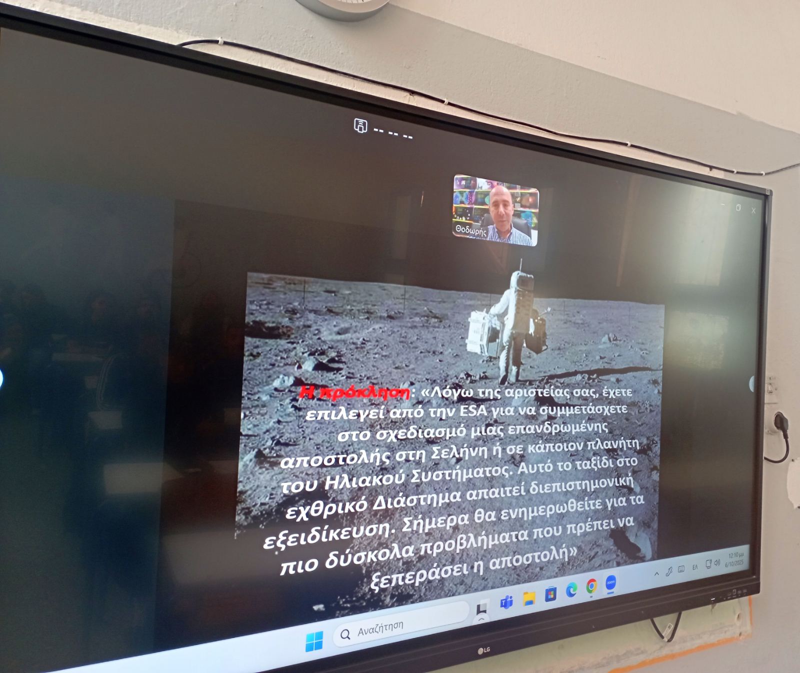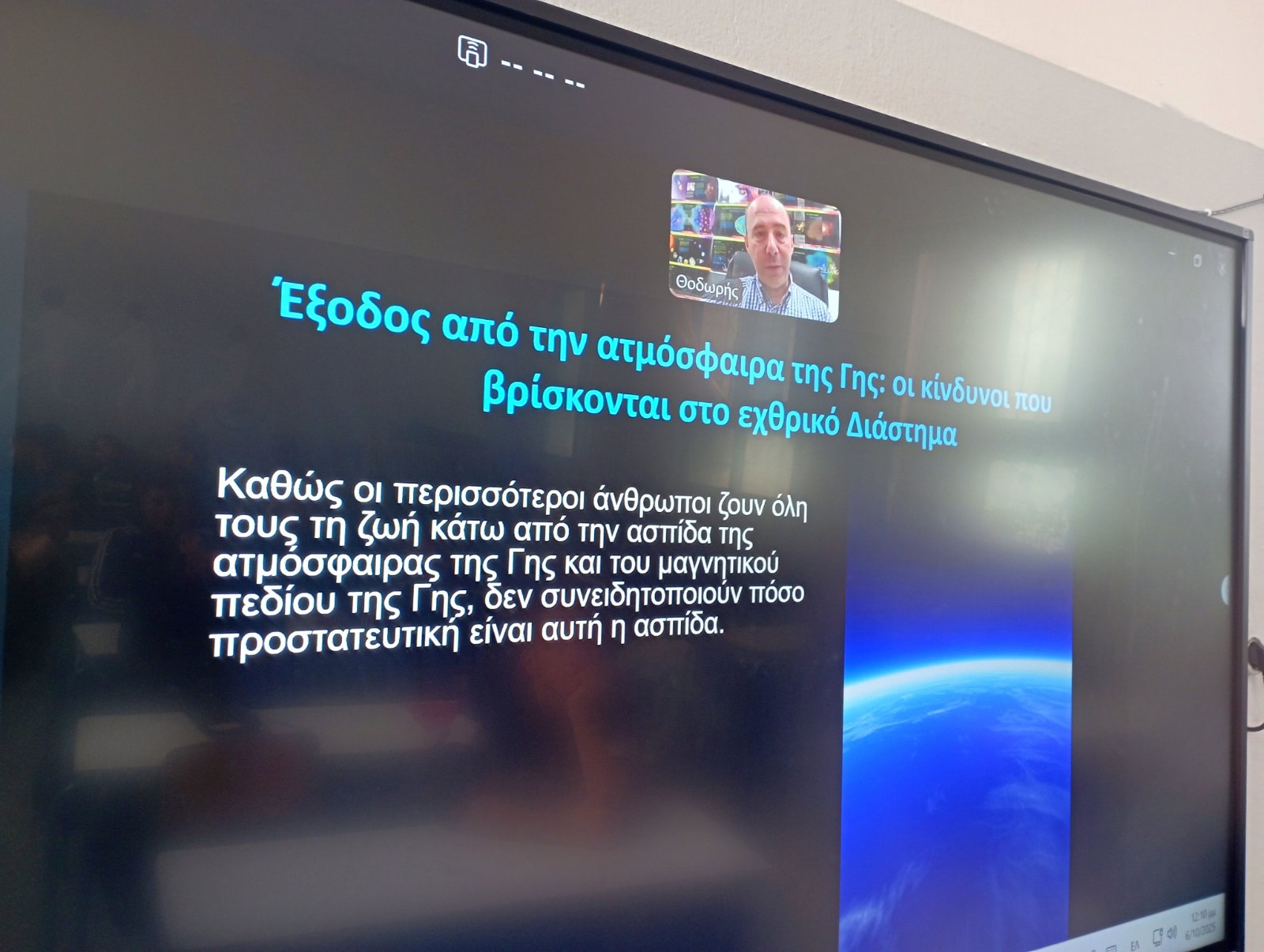 Οι μαθητές της Α’, Β’ και Γ’ τάξης παρακολούθησαν με ενθουσιασμό, έθεσαν ερωτήσεις και εμπνεύστηκαν από τις δυνατότητες που προσφέρει η σύγχρονη διαστημική έρευνα. Η δράση αυτή εντάσσεται στο πλαίσιο της προσπάθειας του σχολείου μας να ενισχύσει τη σύνδεση της εκπαίδευσης με τις επιστήμες αιχμής και και την εξερεύνηση του διαστήματος.