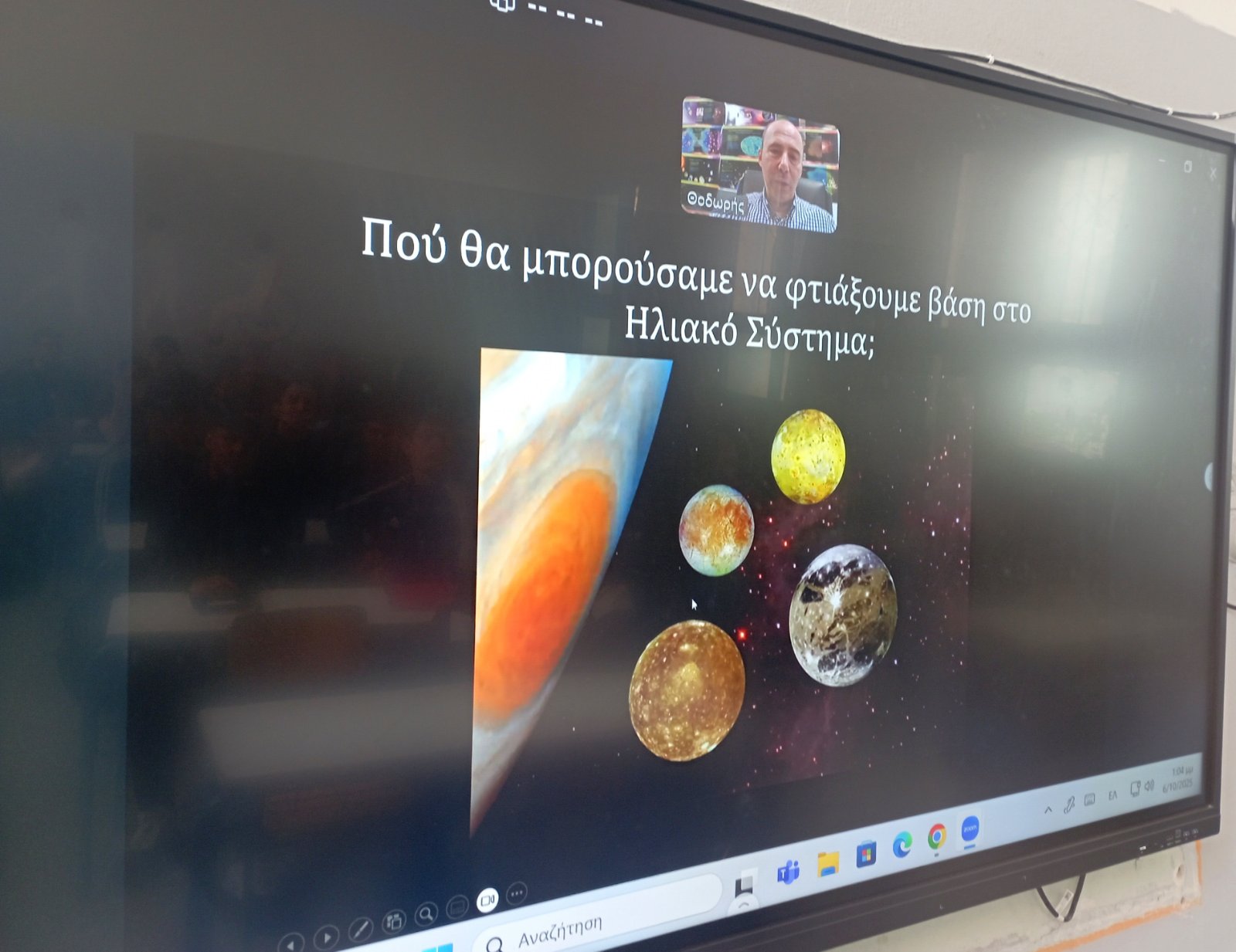 Η διάλεξη πραγματοποιήθηκε από τον Δρ. Θοδωρή Πιερράτο, Φυσικό, ο οποίος με επιστημονική ακρίβεια μετέφερε στους μαθητές τις προκλήσεις, τις τεχνολογικές απαιτήσεις και τις επιστημονικές προοπτικές μιας επανδρωμένης αποστολής πέρα από τη Γη.